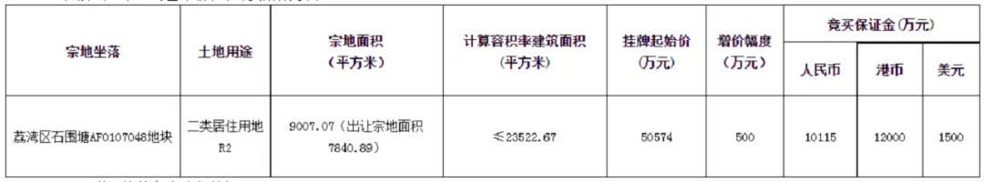 厦门国贸地产以总成交价5.0574亿元拿下荔湾区的石围塘AF0107048地块,折合楼面价约为21500元/㎡,溢价率0%(该地块体量较小,周边置换需求较大,具备快销可能);