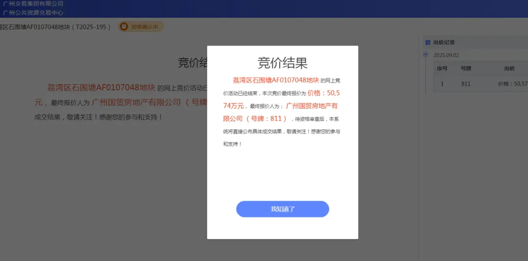 —— 2025.9.2 广州土拍日竞价结果 ——