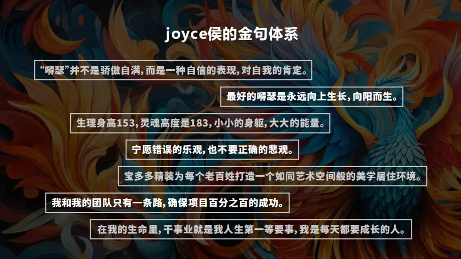 她以地产的钢筋为骨,撑起了商业的疆域;以艺术的诗歌为血,滋养着精神的旷野。在男性主导的行业里,她以“雌雄同体”的智慧,同时驾驭着雄狮的决断与公主的柔软。在行业周期的迷雾中,她像李云龙一样敢打敢拼,却又像哲学家一样思考着生命的意义。