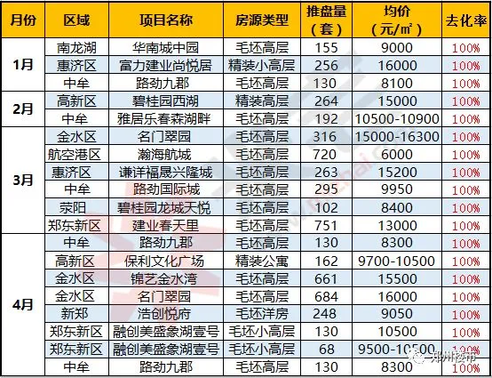如上图,我们统计了上半年郑州开盘情况,1-6月份,郑州共有60+个项目开盘130+次,房源推量约3万套,开盘当天去化约2.55万套,平均去化率约85%。其中31次开盘当天去化100%。