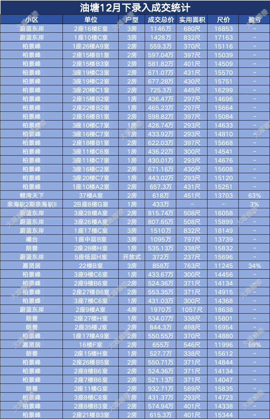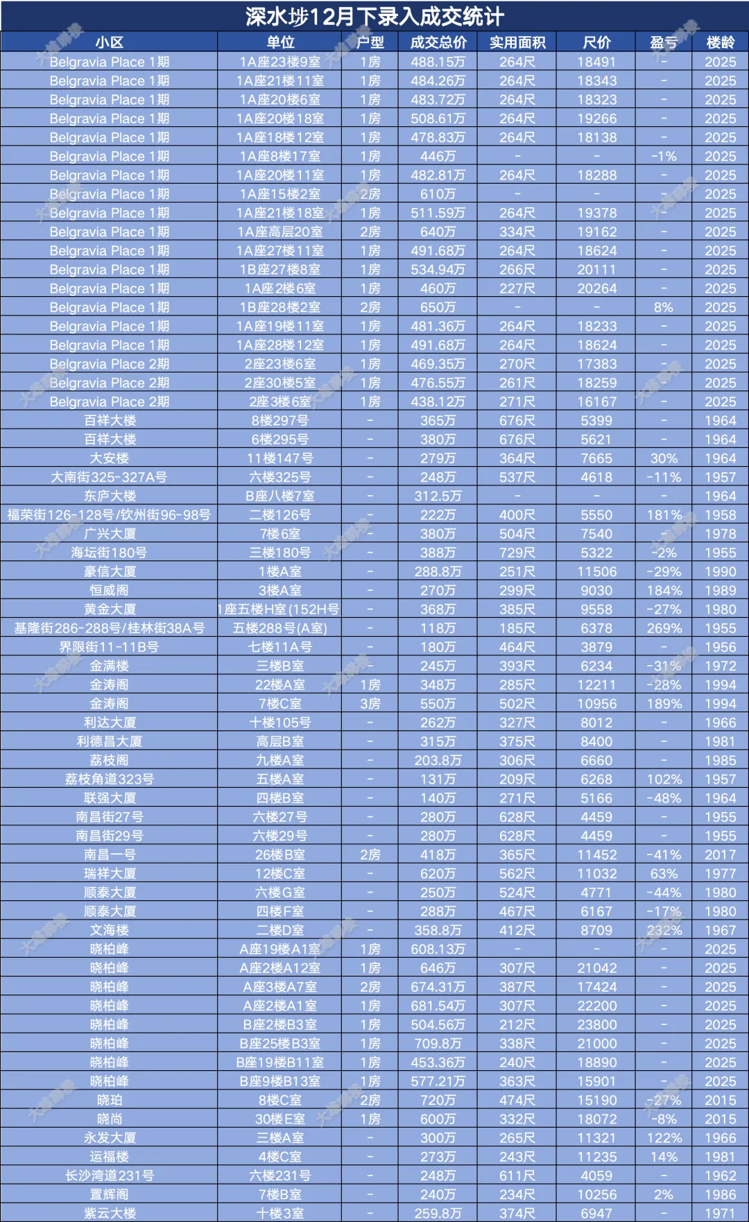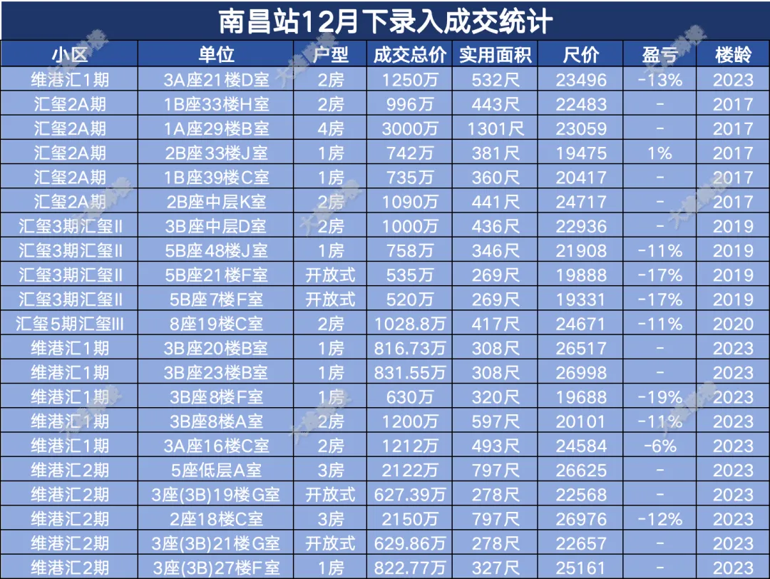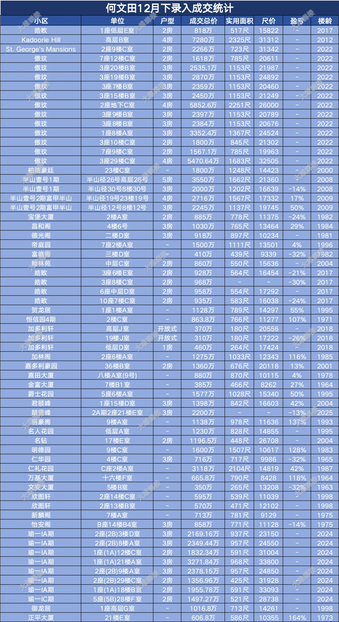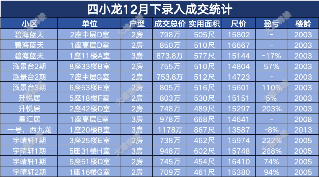 今天统计的是九龙区12月份下半月的成交,包括西九龙、启德新区、奥运站、何文田、九龙塘、观塘、油塘、红磡、旺角等。(统计时间为2025年12月15日至12月31日)
