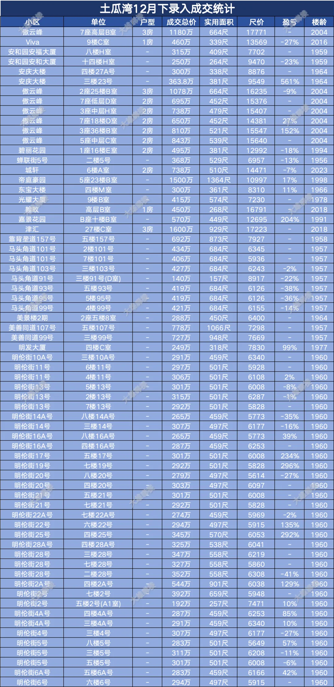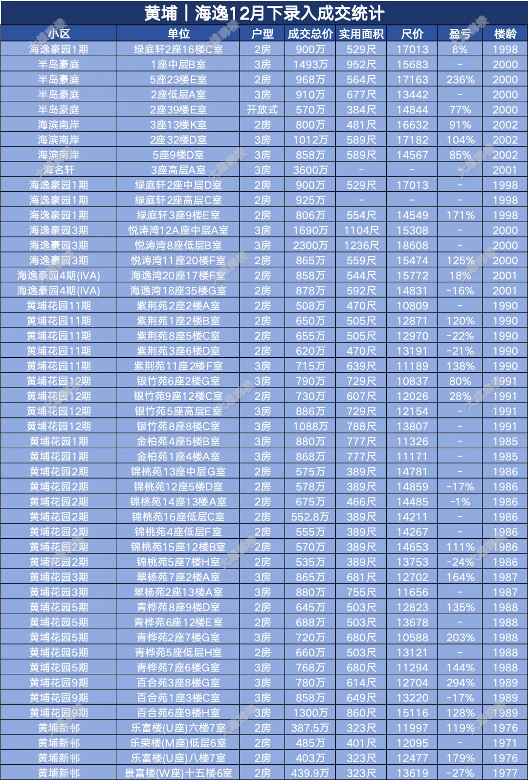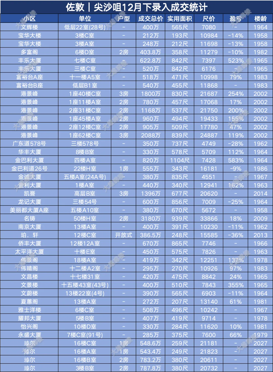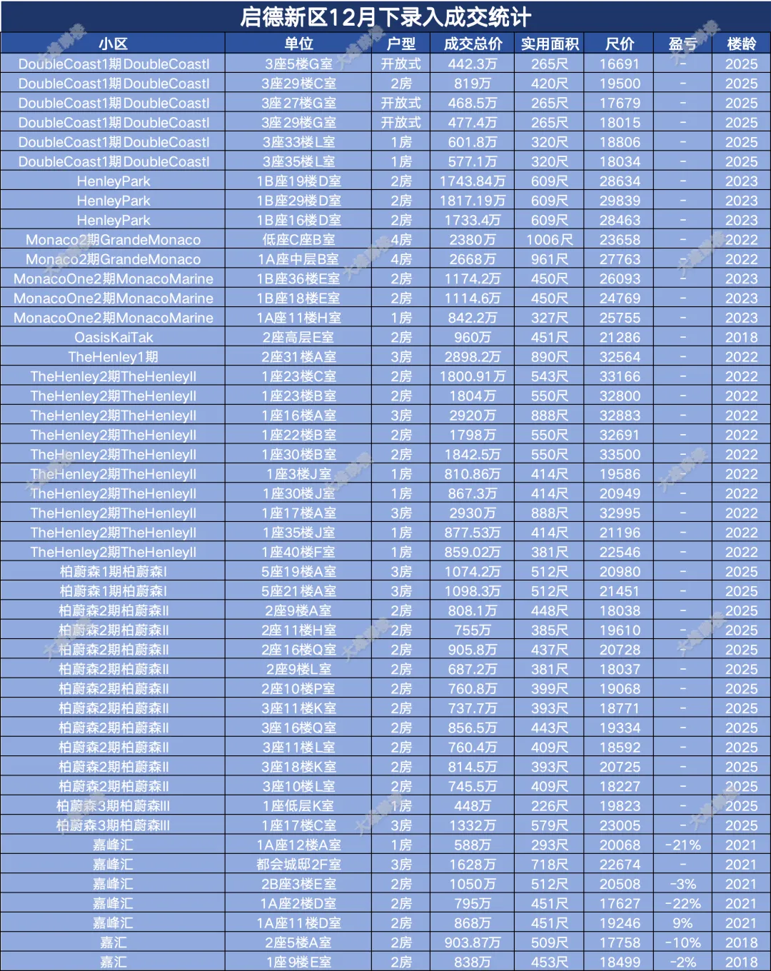 今天统计的是九龙区12月份下半月的成交,包括西九龙、启德新区、奥运站、何文田、九龙塘、观塘、油塘、红磡、旺角等。(统计时间为2025年12月15日至12月31日)