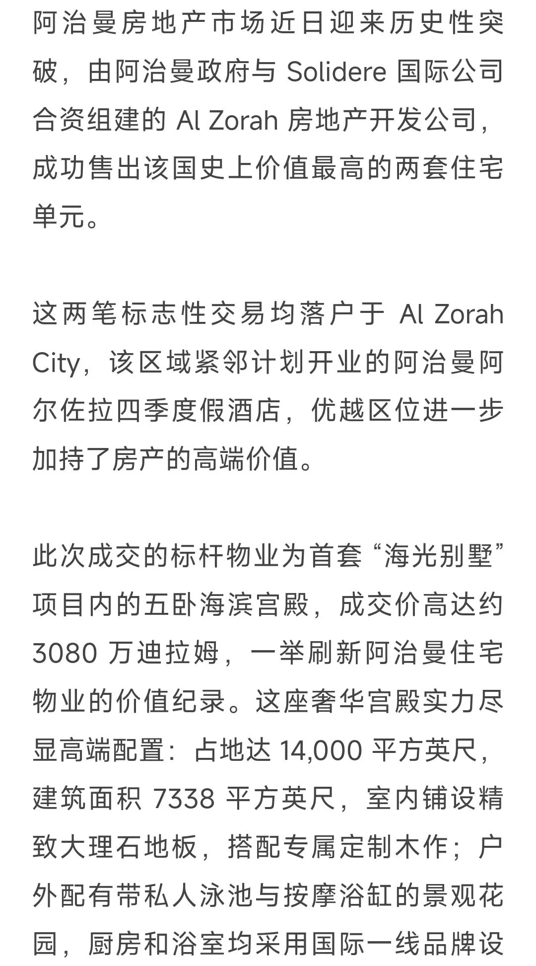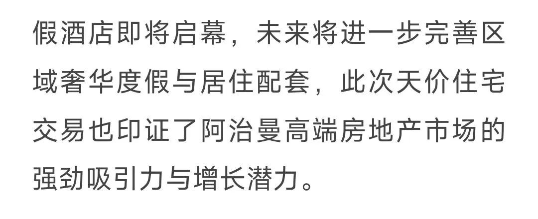 >阿联酋:阿治曼房地产市场迎来历史性突破,一房产以3080万迪拉姆的高价售出!