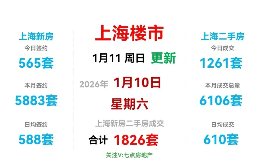 昨日(1月10日,周六),上海新房和上海二手房成交量合计1826套。