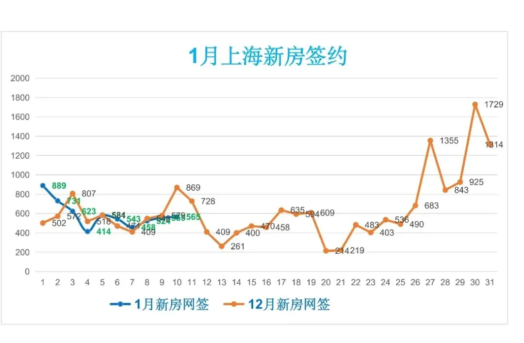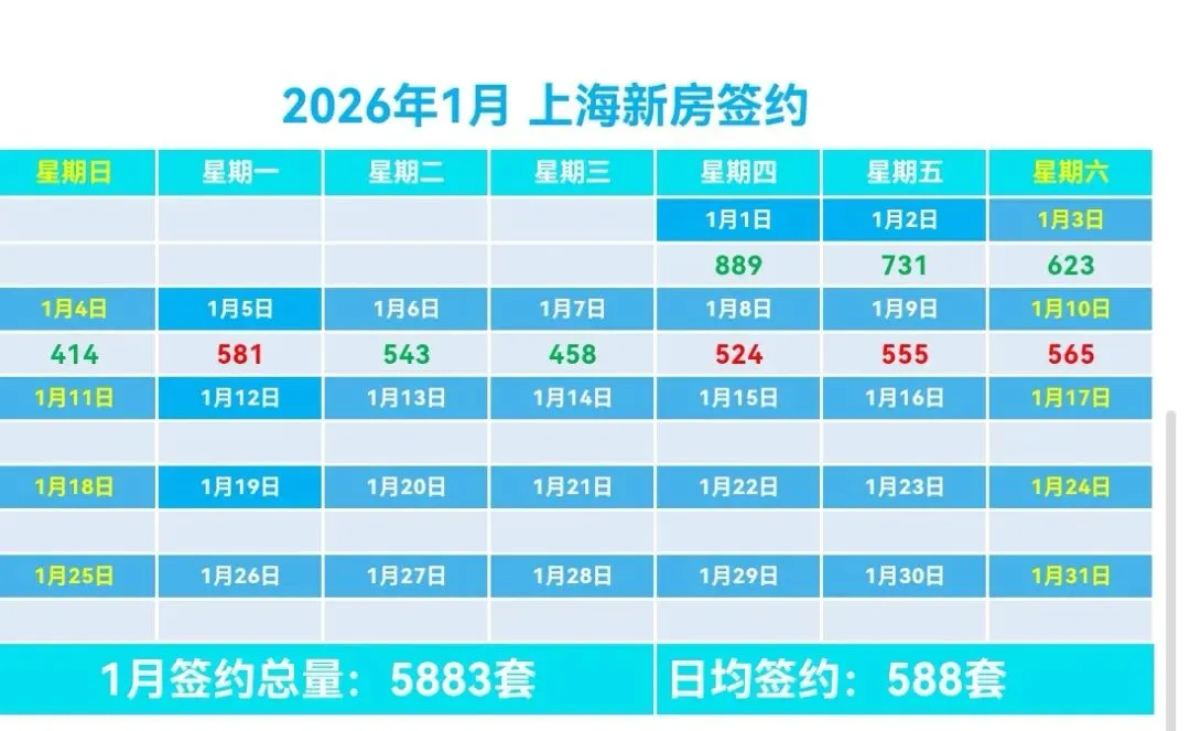 🏠1月上海新房总签约5883套,日均签约588套,本月签约总面积35.66万m²,套均面积63.04m²。