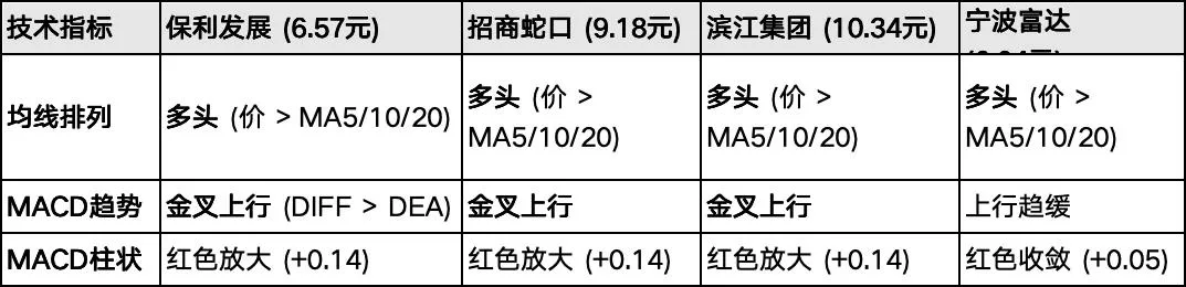(2)保利最强信号:保利虽然基本面最差,但MACD红柱动能与招商蛇口相当,且股价刚从底部爬升(0.4 PB的修复动力)。