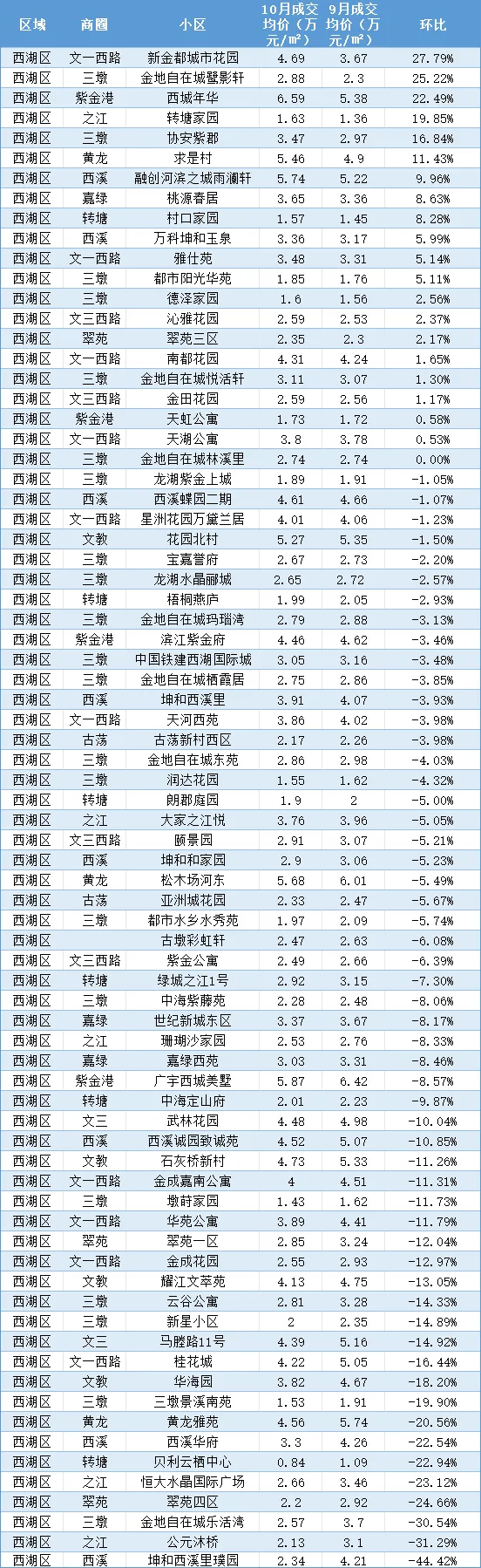 在西湖区,教育资源的长久魅力依然是部分房产最硬的“底盘”。虽然区域内有成交活跃的小区价格涨少跌多,但像拥有优质学区资源的小区,依然能够吸引特定的购房需求。例如,该区个别楼盘在10月份的价格表现就相对稳健。这似乎印证了一个判断:附着于房产之上的稀缺公共资源,其价值在时间的长河中具有更强的稳定性。当然,传统的学区房逻辑也在经受考验,但其核心地段的优质资产,抗跌性依然显著。