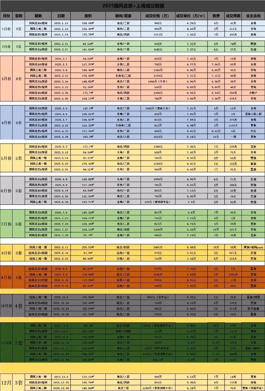 2025年已经悄悄过去,2026年新年来临,祝大家新年快乐!望京2025年的二手房成交详细数据,相关部门不让随便发布了,很多业主和客户都想了解下自家小区成交情况,所以整理成文章,分别按照望京小区分布片区发布今天更新:国风北京、大西洋新城、季景沁园、方舟苑、中广宜景湾、南湖佳苑、慧谷金色家园、远洋万和公馆、慧谷阳光、保利中央公园小区的详细成交数据。❶国风北京 55套
