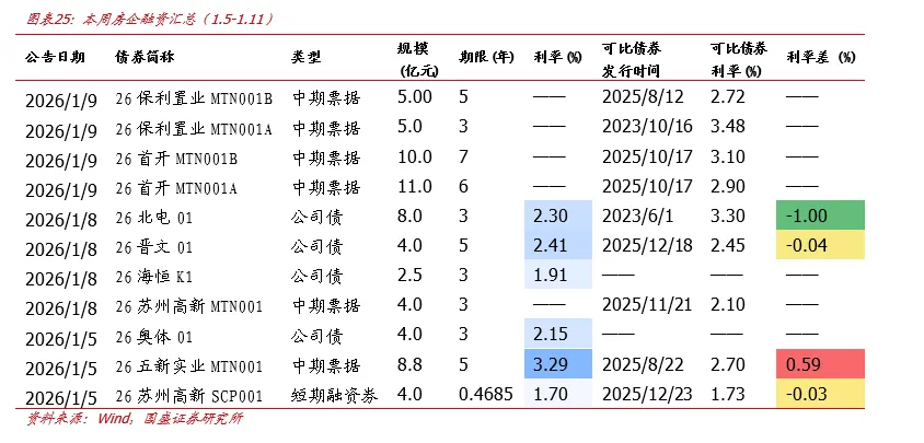融资成本方面,本周发行利率有所下降。其中26北电01 3年期公司债(-100bp)的债券利率较公司之前发行的同类型同期限的可比债券利率有所下降。