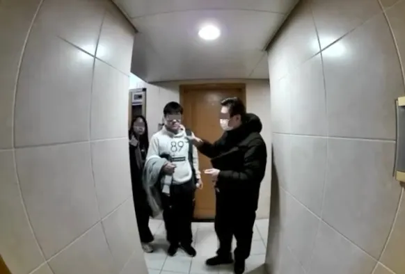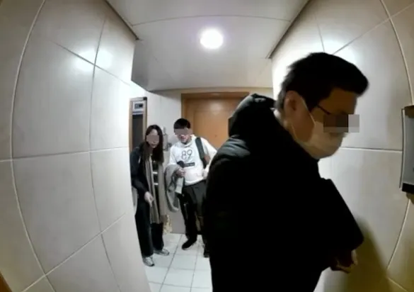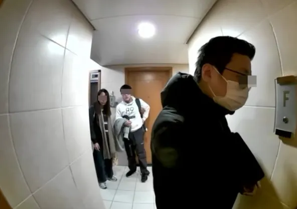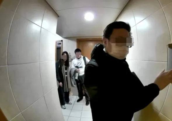 影片顯示,昨日(10日)上午11時54分,地產代理男職員帶一男一女「睇樓」,一邊走向片主單位一邊介紹:「呢度一層6個單位」,其後男職員停在片主門口,「睇樓」女子指向門口疑惑道:「咦?有對鞋喺度」,但該男職員似乎充耳不聞,徑自用門鎖開門及按門鐘,嘗試開門後不果,他把鎖匙抽出,影片到此結束。