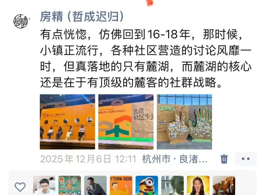 当然,我还是很喜欢良渚的,良渚的价值我还是认为是被低估的。万科的社群故事线应该从良渚开始重新梳理,从三好到五好。