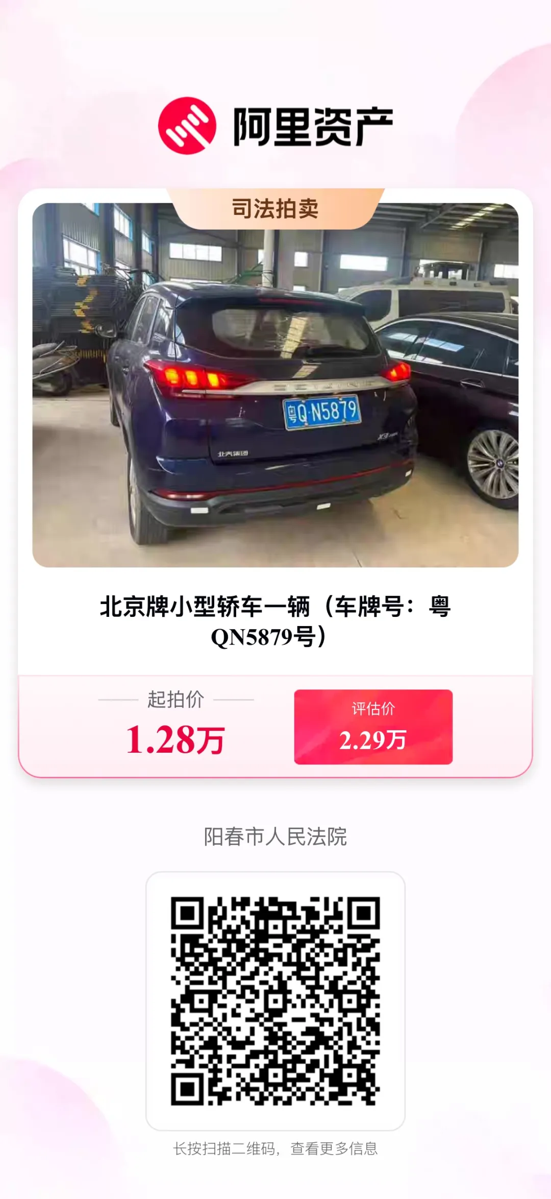 拍卖标的:北京牌小型轿车一辆(车牌号:粤QN5879)