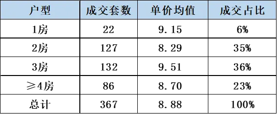 4. 从各户型看全年成交数据: