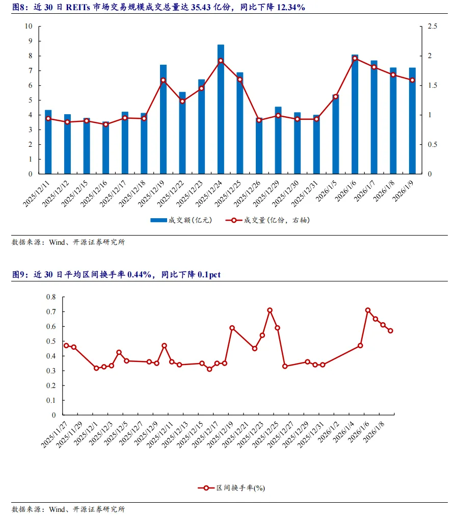 2.4、30日数据:REITs市场成交量同比下降12.34%