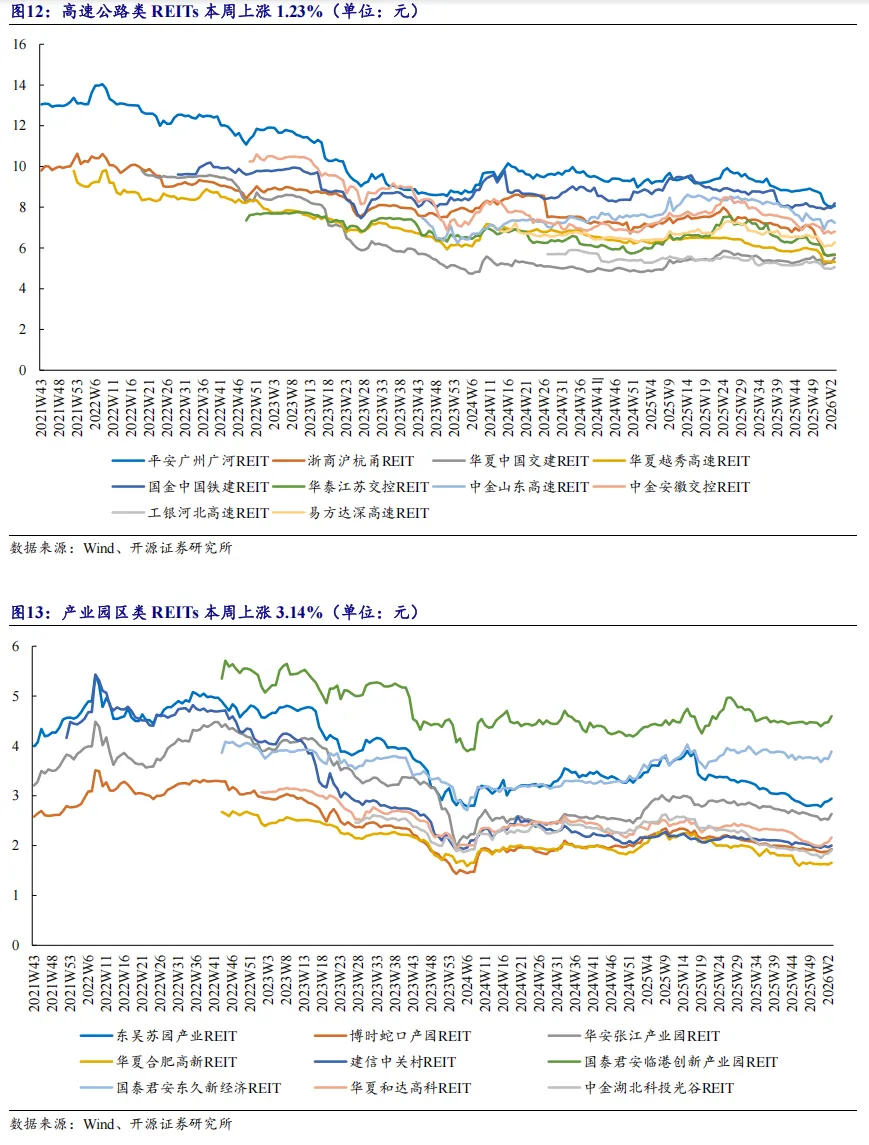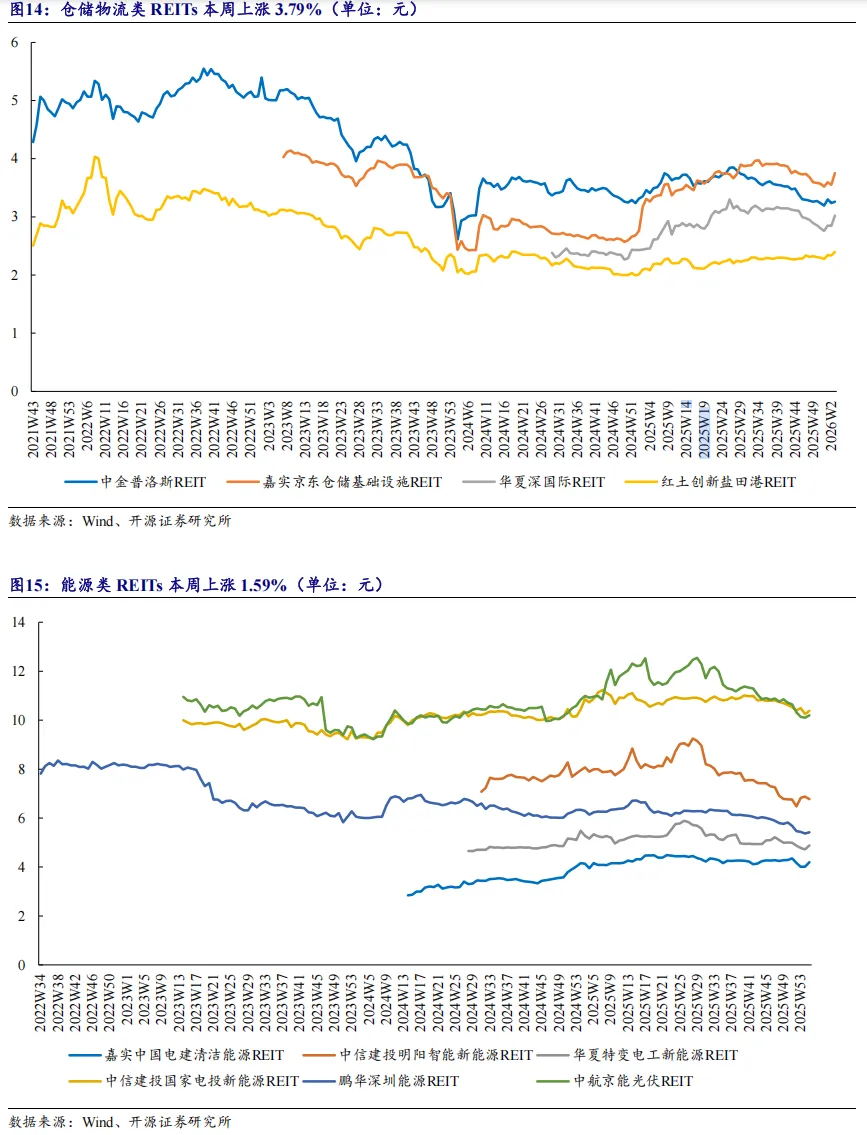 3、分板块表现:消费REITs单周上涨1.89%,单月累计上涨0.85%2026年第2周,保障房、环保、高速公路、产业园区、仓储物流、能源、消费类REITs一周涨跌幅分别为-0.24%、+0.85%、+1.23%、+3.14%、+3.79%、+1.59%、+1.89%;一月涨跌幅分别为-1.67%、-0.51%、-4.03%、+3.85%、+4.50%、-2.32%、+0.85%。2026年第2周,本周华夏深国际REIT、嘉实京东仓储基础设施REIT、华夏中国交建REIT涨幅靠前,涨幅为6.22%、5.63%、4.71%;中金山东高速REIT、中信建投明阳智能新能源REIT、红土创新深圳安居REIT跌幅靠前,跌幅为1.74%、1.54%、1.11%。4、一级跟踪:17只REITs基金等待上市,发行市场持续活跃2026年第2周,共有17只REITs基金等待上市,中航北京昌保租赁住房封闭式基础设施证券投资基金首发申请已受理,平安西安高科产业园封闭式基础设施证券投资基金首发已问询,中航中核集团能源封闭式基础设施证券投资基金、东方红隧道股份智能运维高速封闭式基础设施证券投资基金首发申请已反馈,发行市场保持活跃。