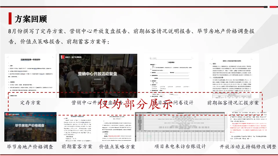 本报告是“云阳·奥博湾”项目为达成10月开盘目标而制定的8月营销保障方案。报告首先回顾了8月营销中心开放前后的销售数据、媒体推广及团队动作,指出自然来访量低、客户储备不足、市场发声弱等核心问题。其次,分析了竞品市场,明确了项目面临的挑战。基于首开2000万(约40套)的销售目标,报告制定了详尽的“全线开花”营销策略,核心包括:空军(媒体)推广、陆军(渠道)扫荡、活动氛围营造三大战线,并提出了具体的执行计划、人员分配及总计约98万元的费用预算,旨在强力蓄客,保障开盘成功。