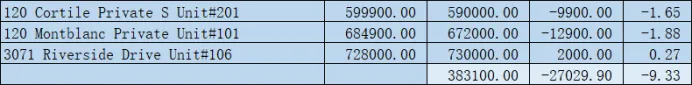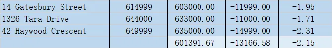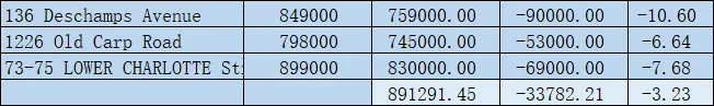 /独立屋分别为:10/6/24/38套,渥太华地区的成交各类房屋的均价以及加价率如下: