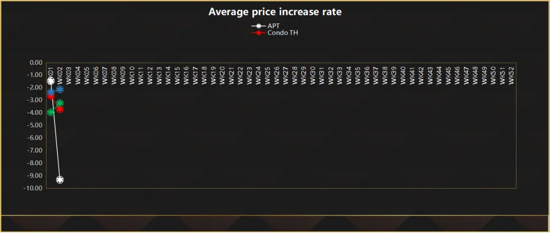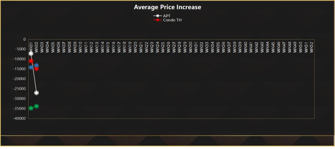 高层公寓类的均价相比上一周的36.53W,平均价格调整至38.31W。