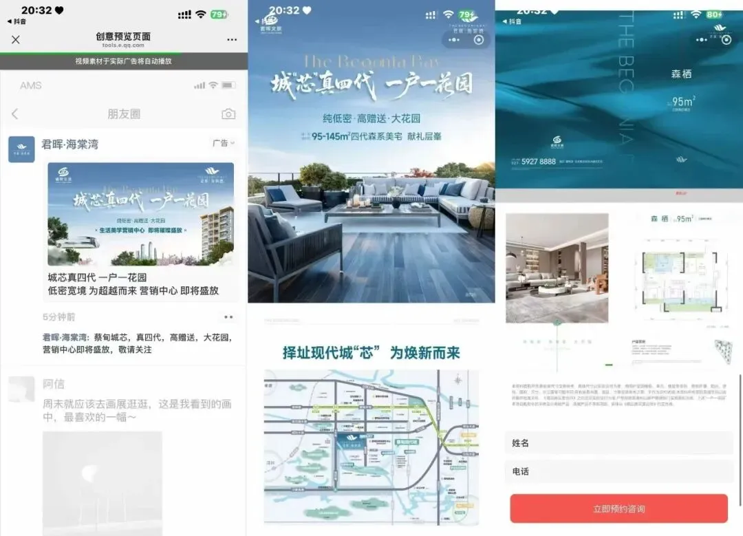 朋友圈房产广告投放是地产开发商或中介常见且效果显著的获客方式,广告会出现在用户的微信朋友圈【第五条位置】,以图文或视频的形式展示,文案简洁明了,突出楼盘的核心卖点和优势,如区位优势、配套设施、价格优惠等。