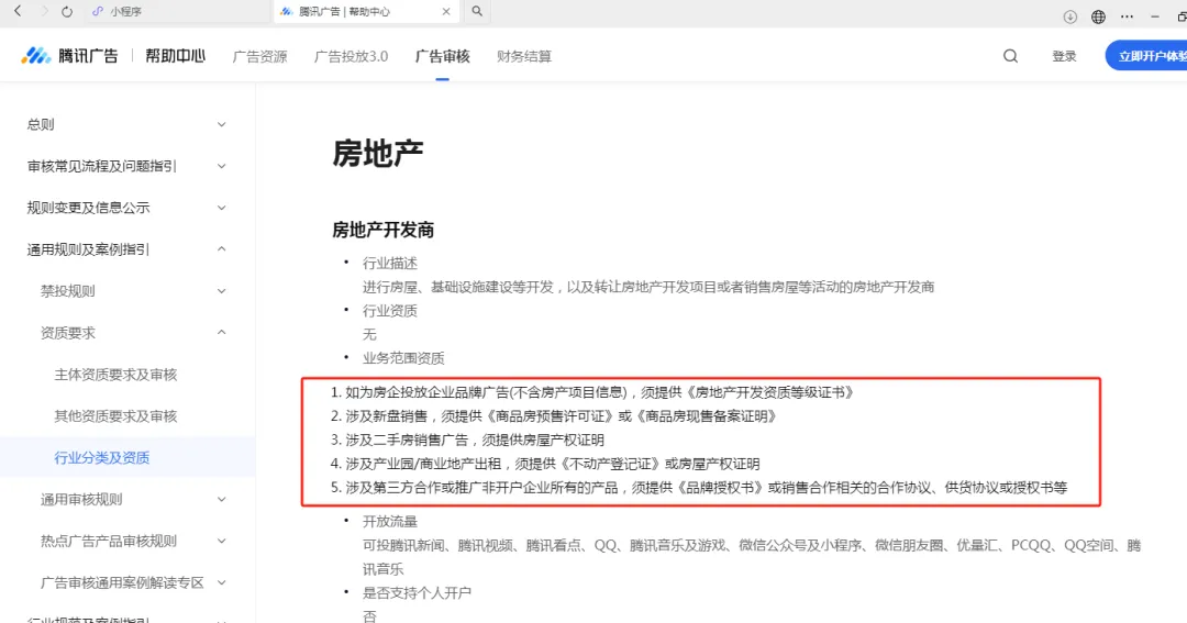 1、广告开户:房地产企业或广告代理商需要提供营业执照、法人身份证反正面照片以及预售证等相关行业资质,向腾讯广告代理商申请开通广告账户(目前开户具体以咨询六安微点专属开户人员为准,因为房产为独代行业,区域不同,要求有不同,当然如果开户要求达不到,我们也可以为您全部搞定)