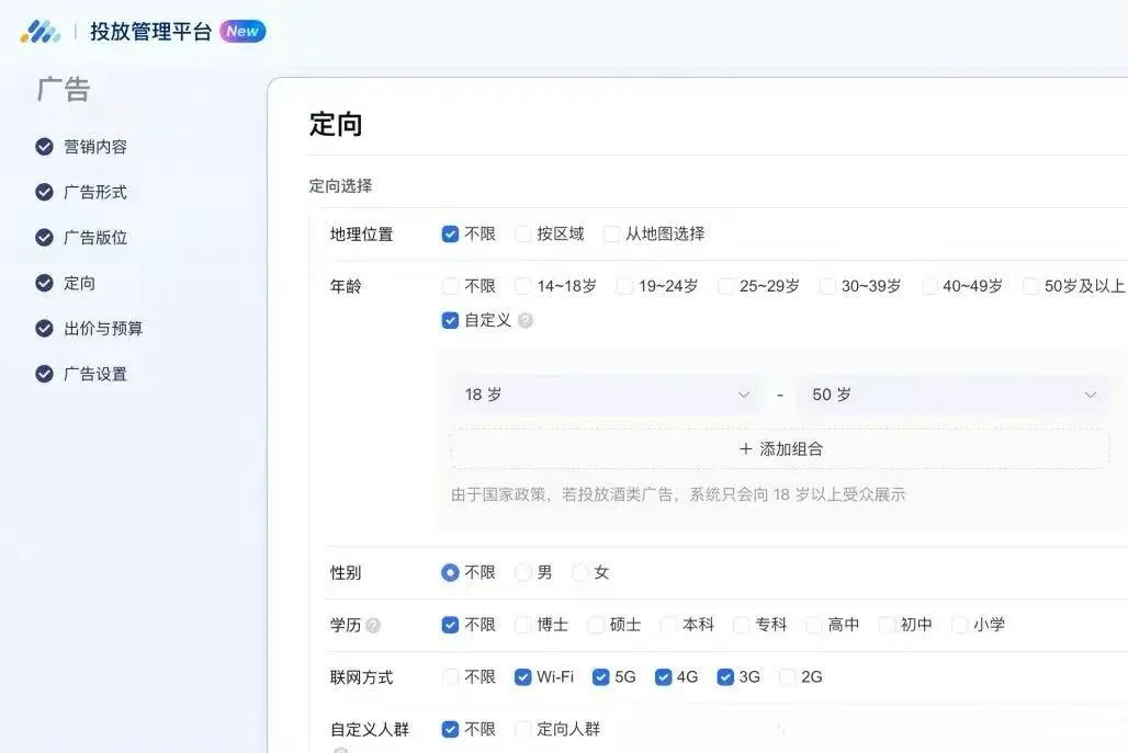 5、广告投放与优化:广告上线后,密切关注广告数据,根据曝光量、点击量、转化率等指标,分析广告效果。如果发现广告效果不理想,可以及时调整广告策略,如优化广告素材、调整定向条件、增加投放预算等,以提高广告的质量和效果,实现更好的营销目标。