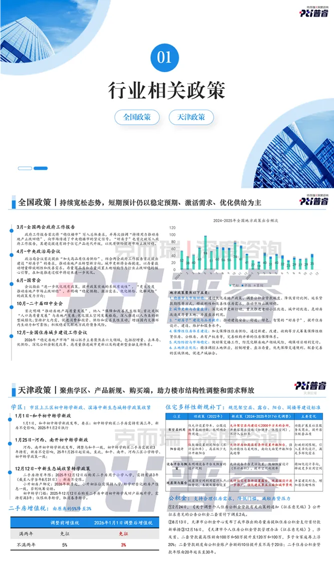 天津房地产政策定向宽松、精准施策,构建“供给端规制创新+需求端动能释放”双向框架。供给端以住宅多样性新规重构产品价值,赋能房企精准适配与溢价提升;需求端叠加学区政策倾斜、公积金“降首付、提额度”、二手房增值税减负,释放改善需求、疏通存量流通链路。