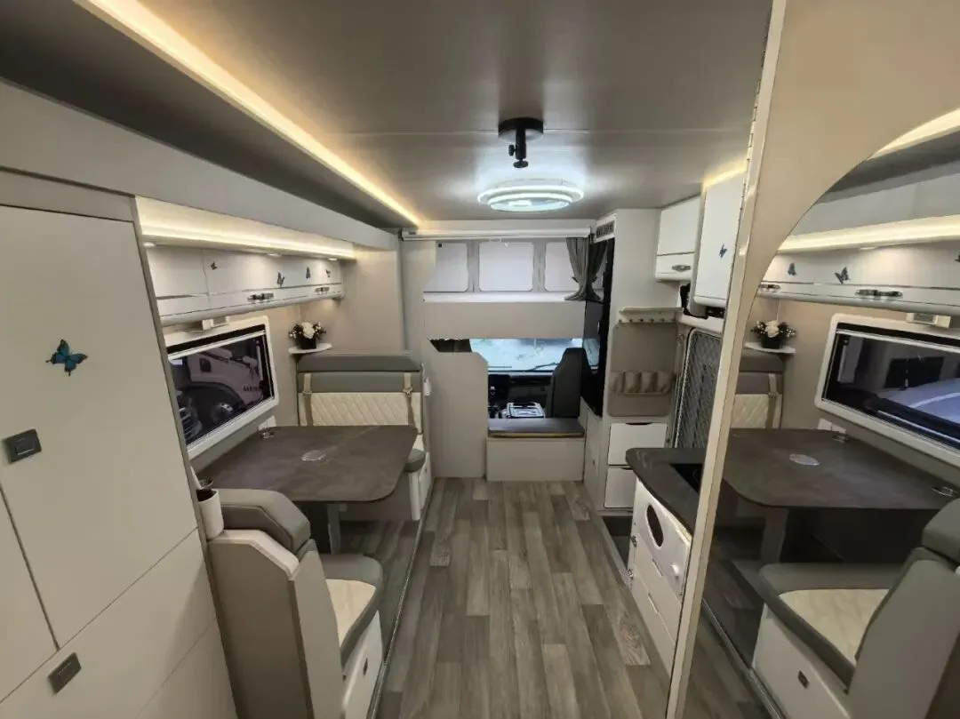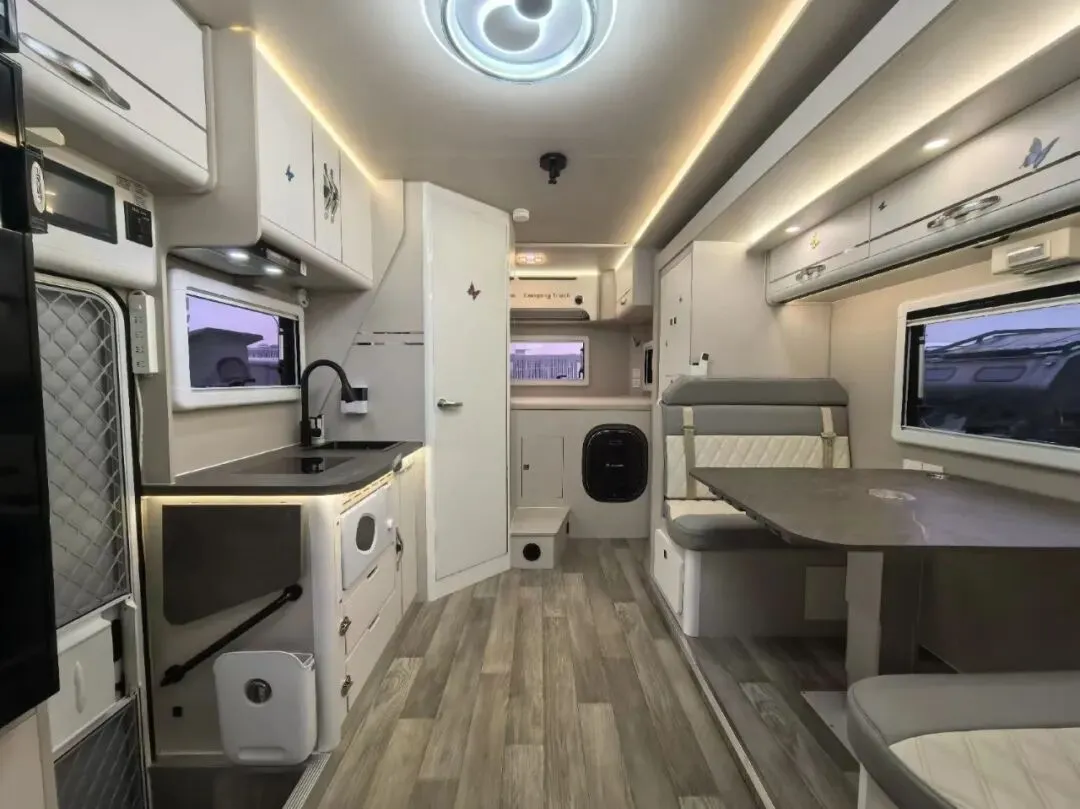 【户外配置】:电动踏步,户外遮阳棚,防蚊纱帘,户外取水口,户外翻折桌板,驻车支腿,三口拖车杠,后摩托车架