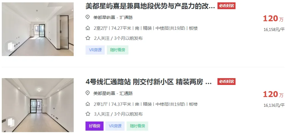 另外,根据二手房平台展示,美都星屿熹目前还有5套二手房挂牌在售,挂牌单价从1.6-2.4万元/㎡不等!