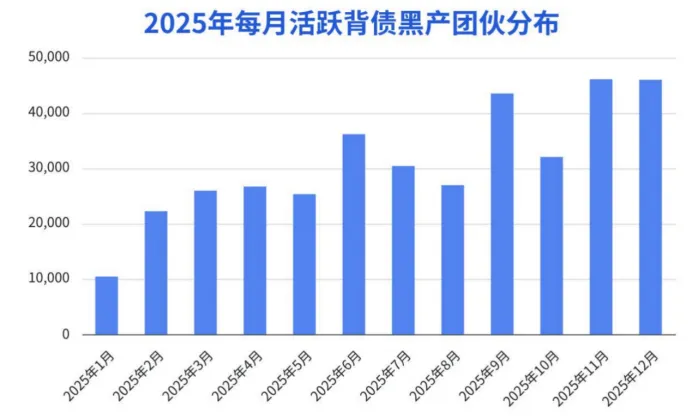 专门监控黑灰产的“威胁猎人”告诉一本财经,仅2025年活跃的背债黑产团伙就有21020个。
