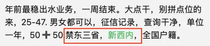 通常来说,他们不要“新西内”的,也就是新疆、西藏、内蒙古户籍。