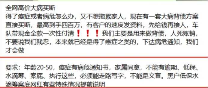 要求年龄20到50岁,癌症有病危通知书,家属也要签署同意书,且不能有逾期、低保、案底等。