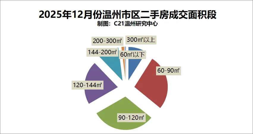 12月,市区二手房(住宅)成交热门面积段排名前三分别是90-120㎡,60-90㎡,以及120-144㎡房源。
