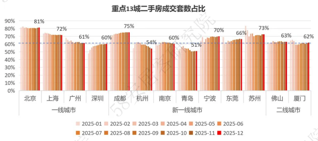 数据说明:二手房成交占比=二手房成交套数/(新房成交套数+二手房成交套数)