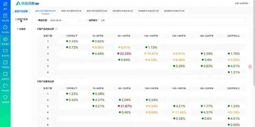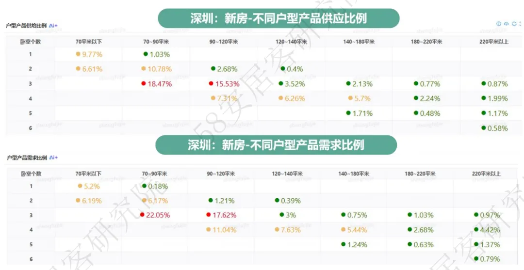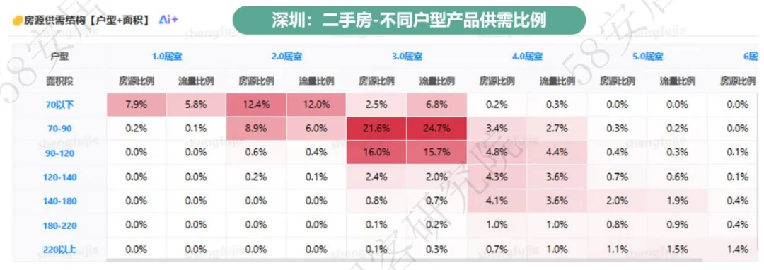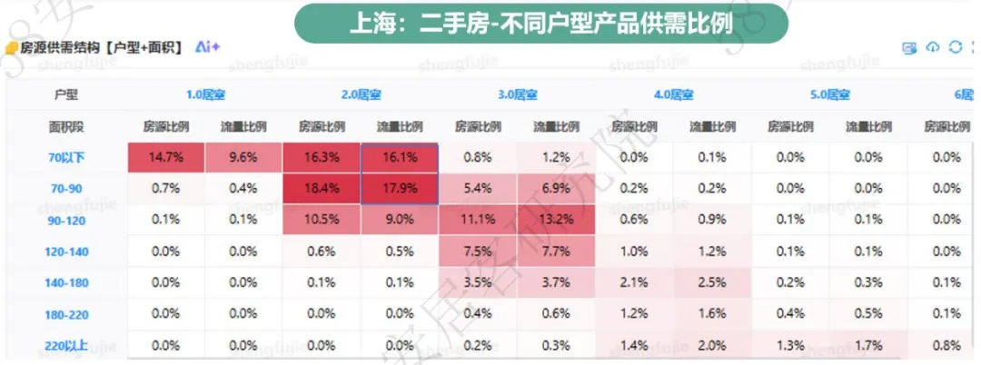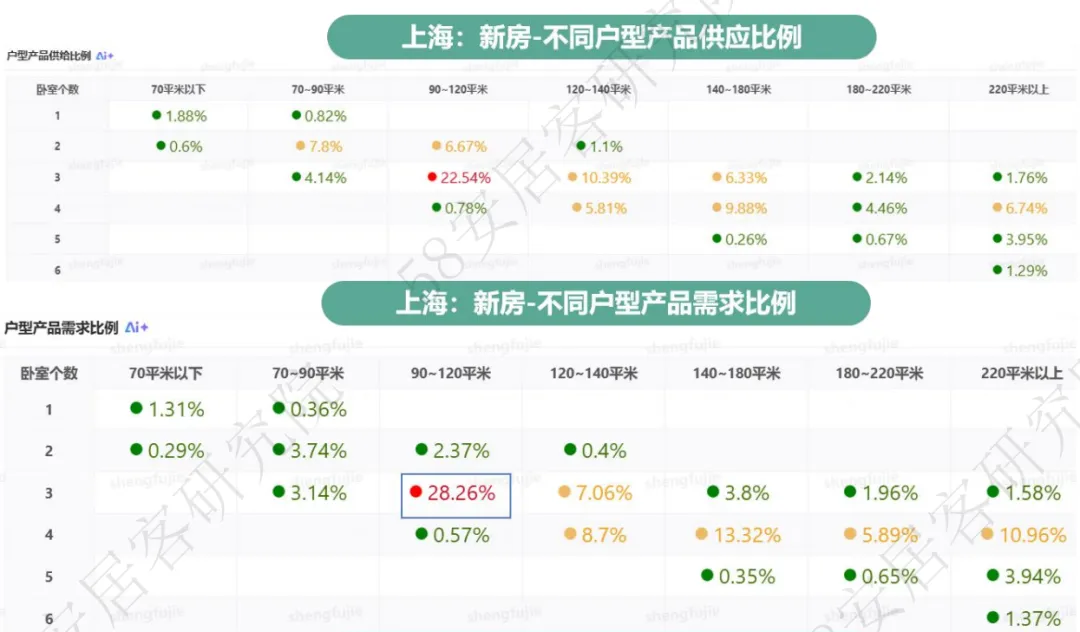 数据说明:新房户型供应比例根据项目各类户型汇总统计,新房需求比例根据项目各类户型找房关注度统计,二手房户型供应比例(表中的房源比例)根据挂牌房源的户型汇总统计,需求比例(表中的流量比例)则根据挂牌房源的各类户型的流量汇总统计,数据统计截止2025.12.31