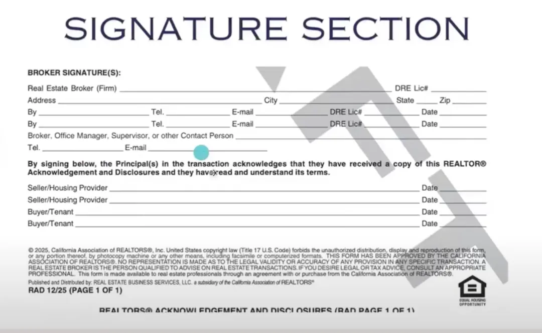 RAD(REALTOR® Acknowledgement and Disclosures),