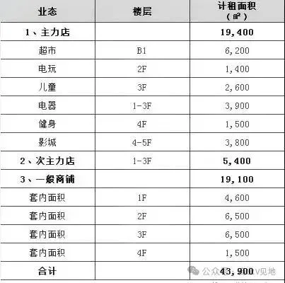 注:主力店按建筑面积计租,一般商铺按套内面积计租。
