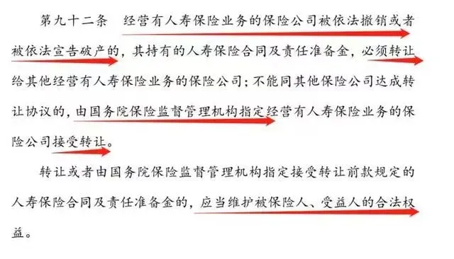 大白话就是,无论保险公司倒闭或被接管,消费者保单上的利益不改变。