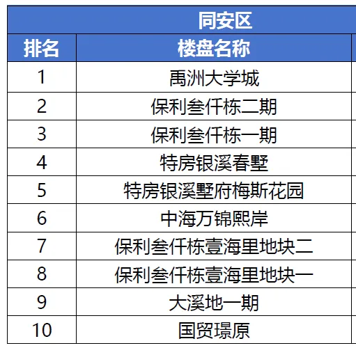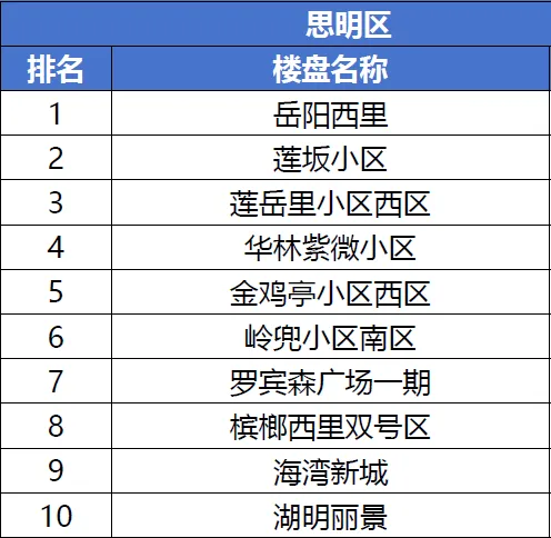 >厦门各区12月二手房成交热门小区排名,看看有没有你的小区