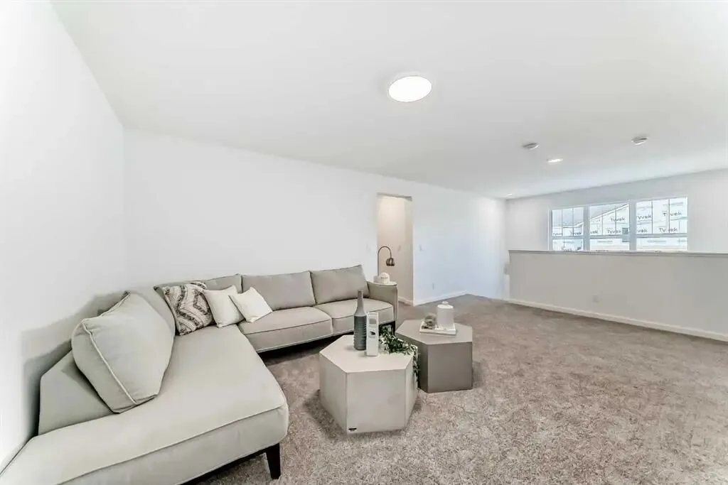 楼上空间依然宽敞,设有中央家庭娱乐室(Bonus Room)、三间次卧,以及一间 超大主卧套房。五件套主卫采光充足。