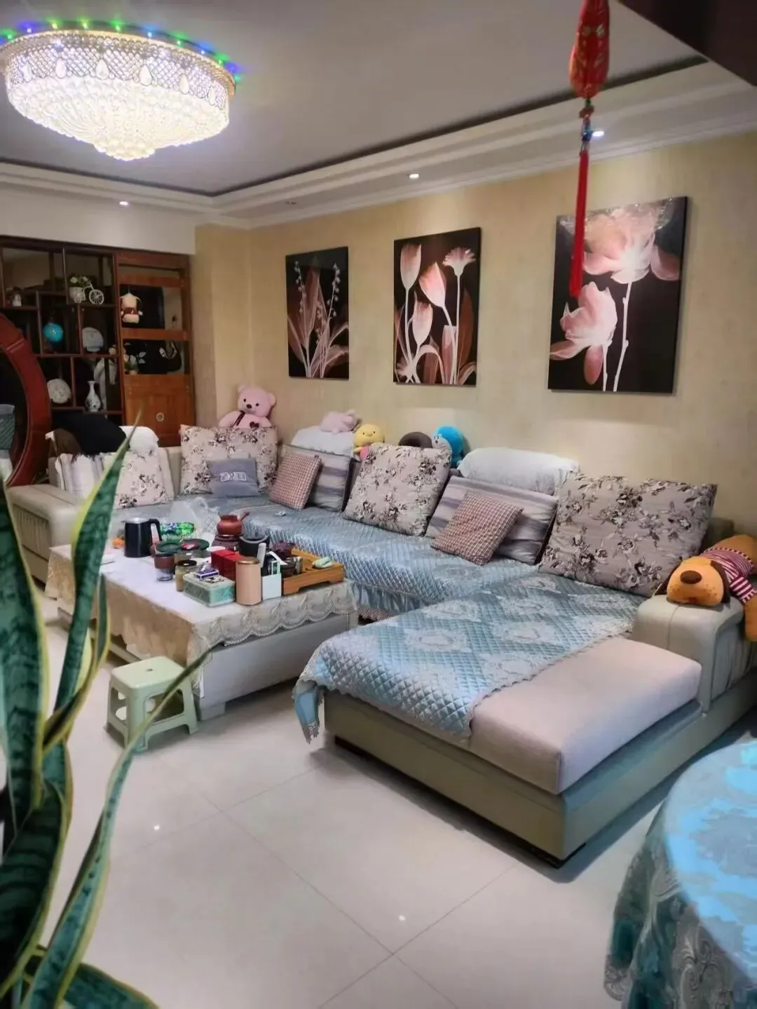 出售丽苑新城112平米,三室两厅一卫,带家具家电,证过两年,按揭65万,