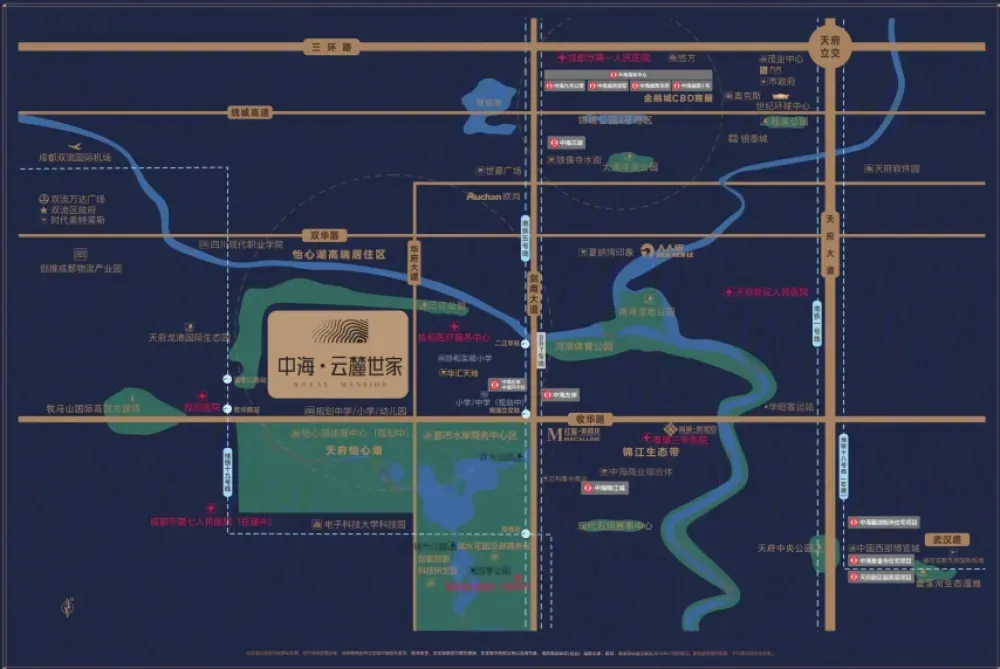 成都中海云麓世家项目位于城南怡心湖,是由中海打造高端世家系产品。在原生浅丘地貌上,打造约6.3米挑高,7.8-8.1米客厅大尺度开间的台地别墅 ,110-140㎡墅区平层, 155-165㎡世家叠拼别墅
