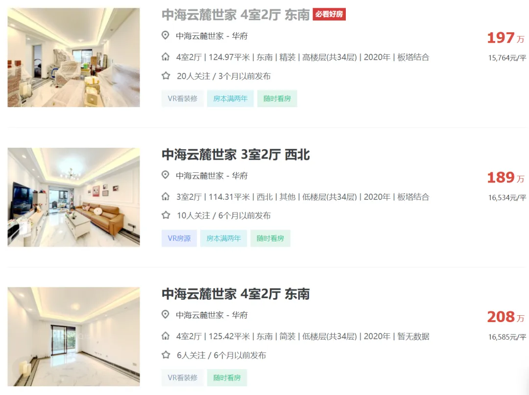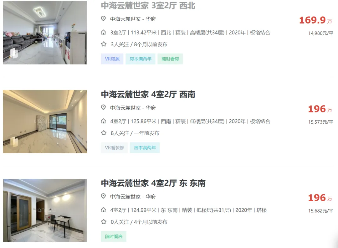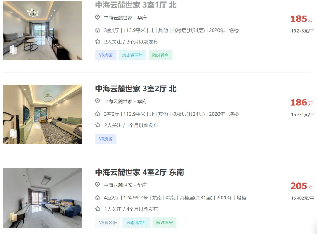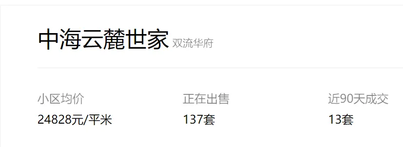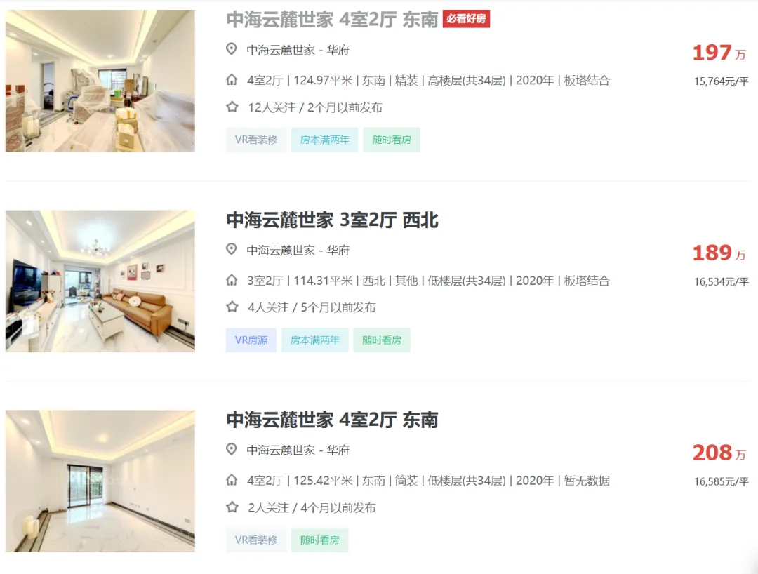 成都中海云麓世家二手房挂牌单价已重回1.56万!