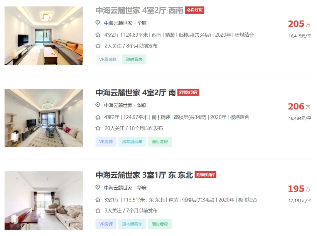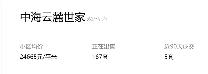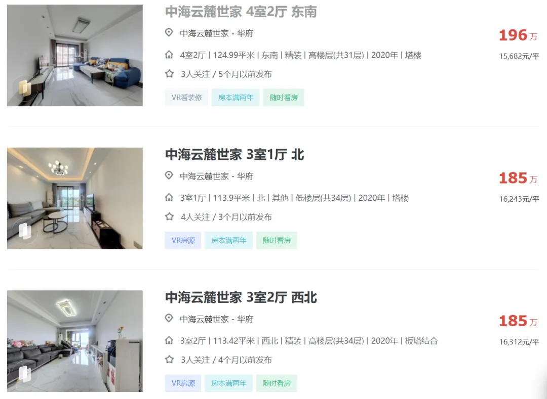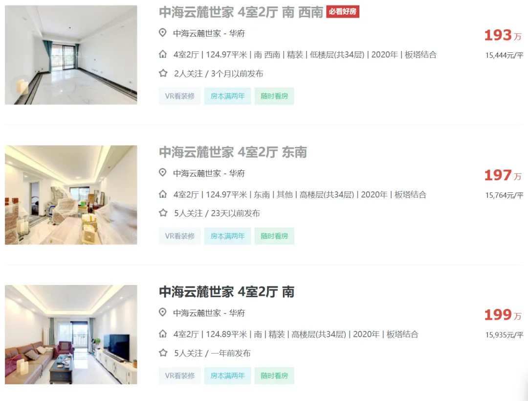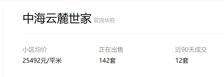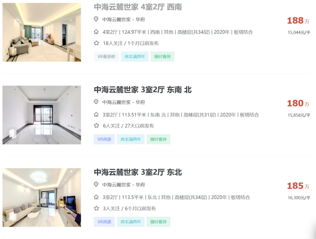 成都中海云麓世家二手房挂牌单价已重回1.56万!
