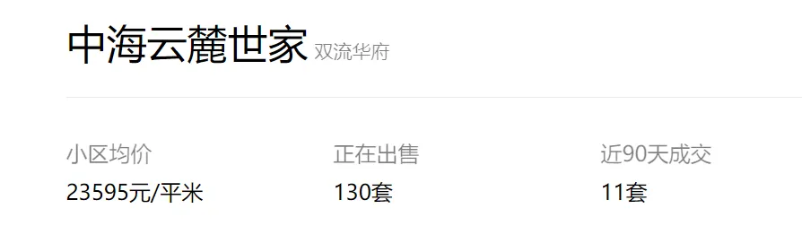 截止2024年08月10日23点,成都“5.31新政”后成都中海云麓世家链家外网挂牌在售住宅130套,最低挂牌单价约15044元/㎡!