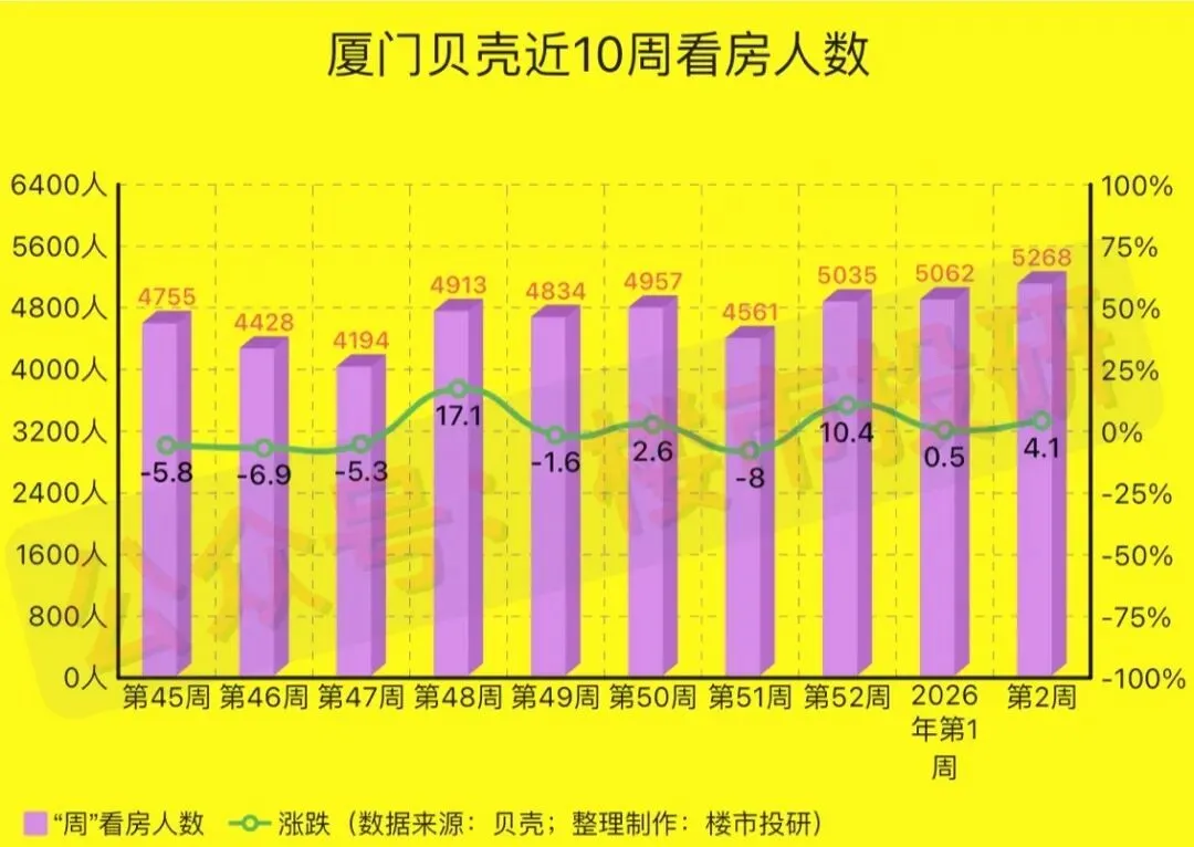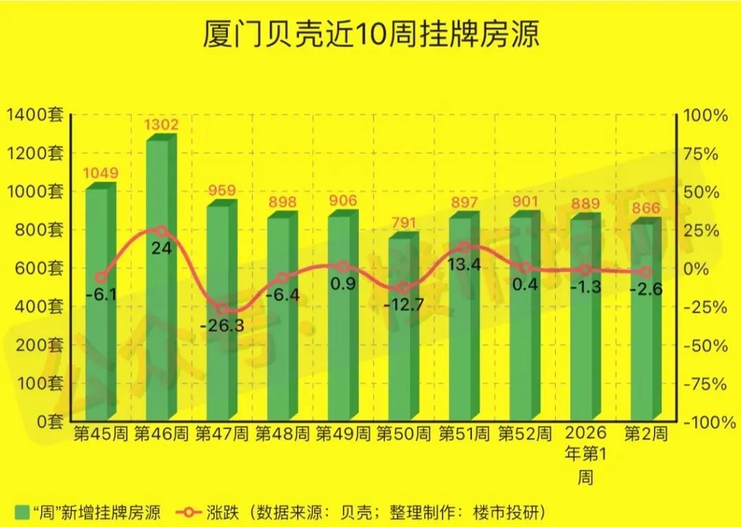 一、2026年第2周(1月05日-1月11日),厦门贝壳平台二手房相关数据一览: