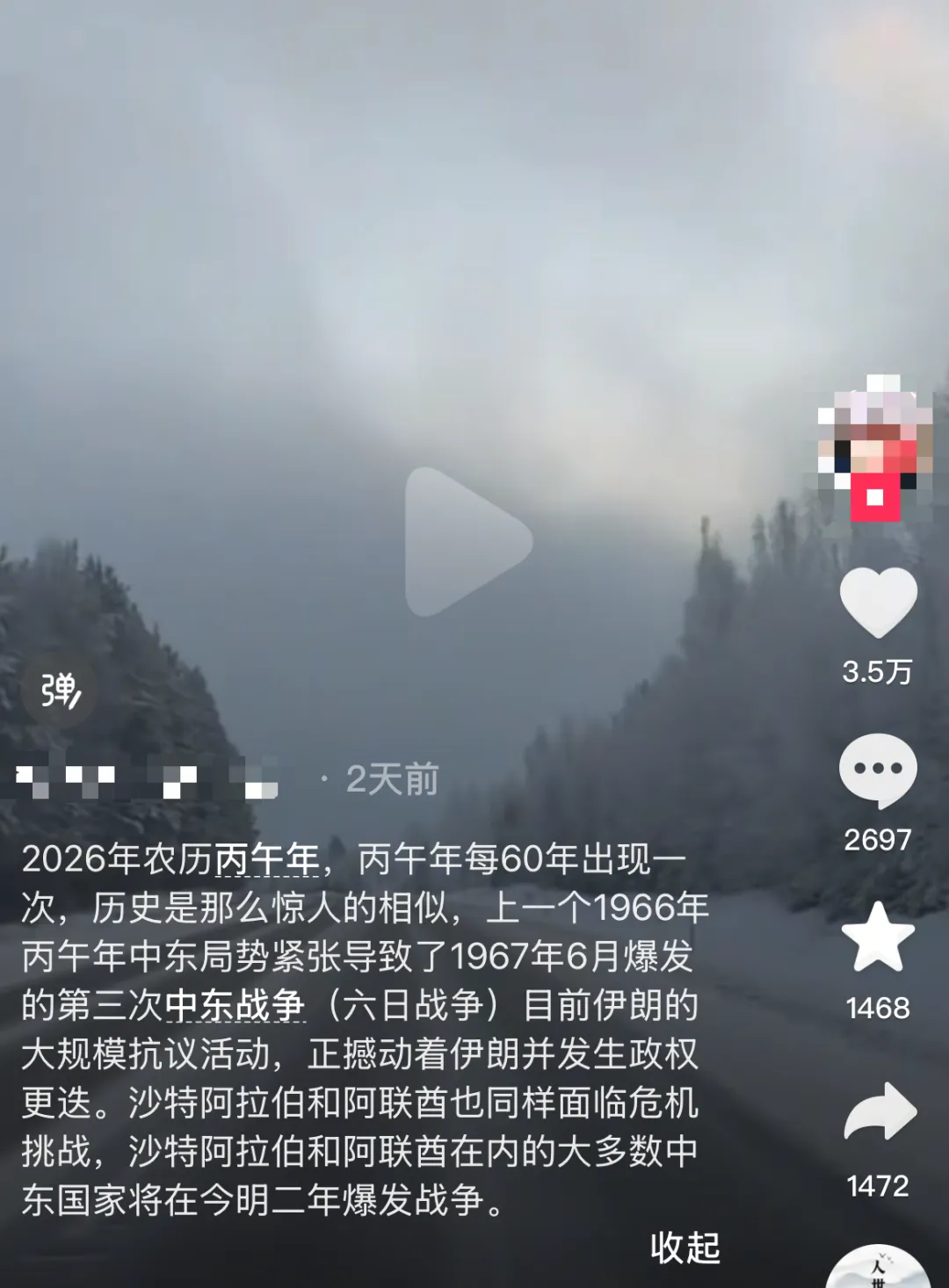把 1966 年丙午年、中东紧张、1967 年六日战争、伊朗抗议、沙特和阿联酋危机串成一条线,得出一个结论——“中东即将全面开战。”