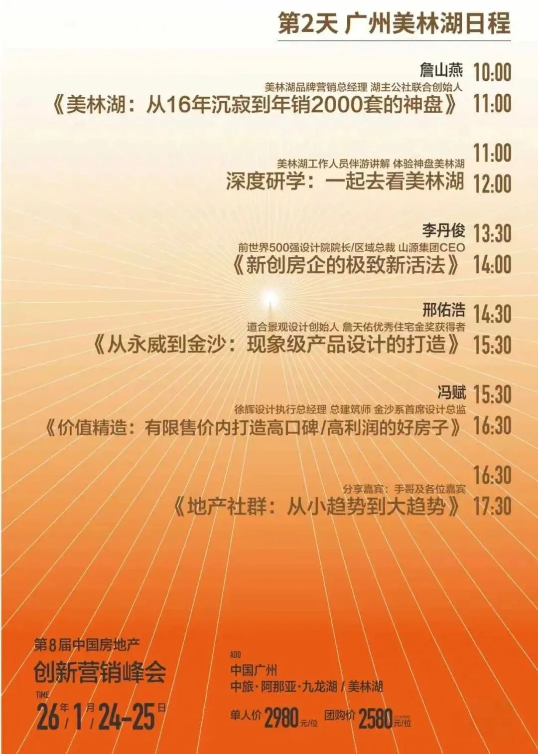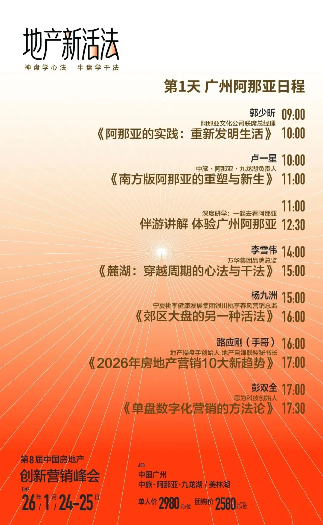 1月24–25日,中国广州听万华品牌总监李雪伟分享《麓湖穿越周期的心法与方法》“地产新活法”第8届创新营销峰会即将开启向神盘学心法,向牛盘学干法