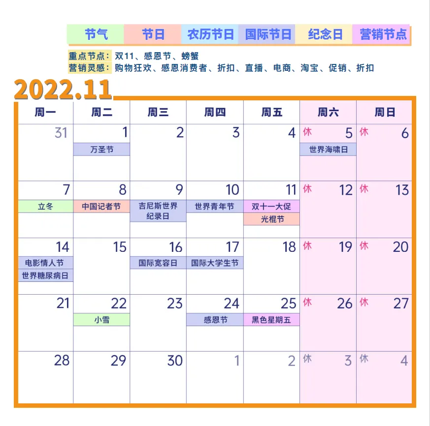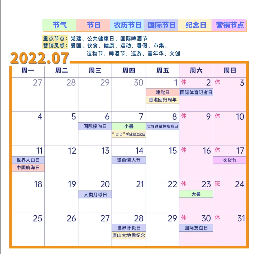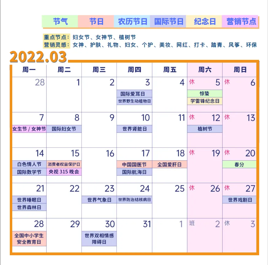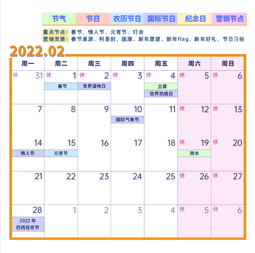 2022年营销日历