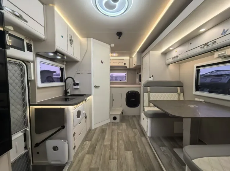 【上装配件】小米家用变频变频空调,152L弗罗斯特双开门冰箱,驻车燃油暖风,电热水器,格兰仕微波炉,电磁炉,抽油烟机,莫博3Kg洗衣机,四路监控,流媒体后视镜、独立卫生间,法恩莎抽拉马桶,淋浴花洒,卫生间双向换气扇、电动踏步,户外遮阳棚,防蚊纱帘,户外取水口,户外翻折桌板,驻车支腿,三口拖车杠,后摩托车架、多功能方向盘,断气刹,主驾汽动座椅,后横床+对卡座侧拓展+额头床布局,大水大电大空间