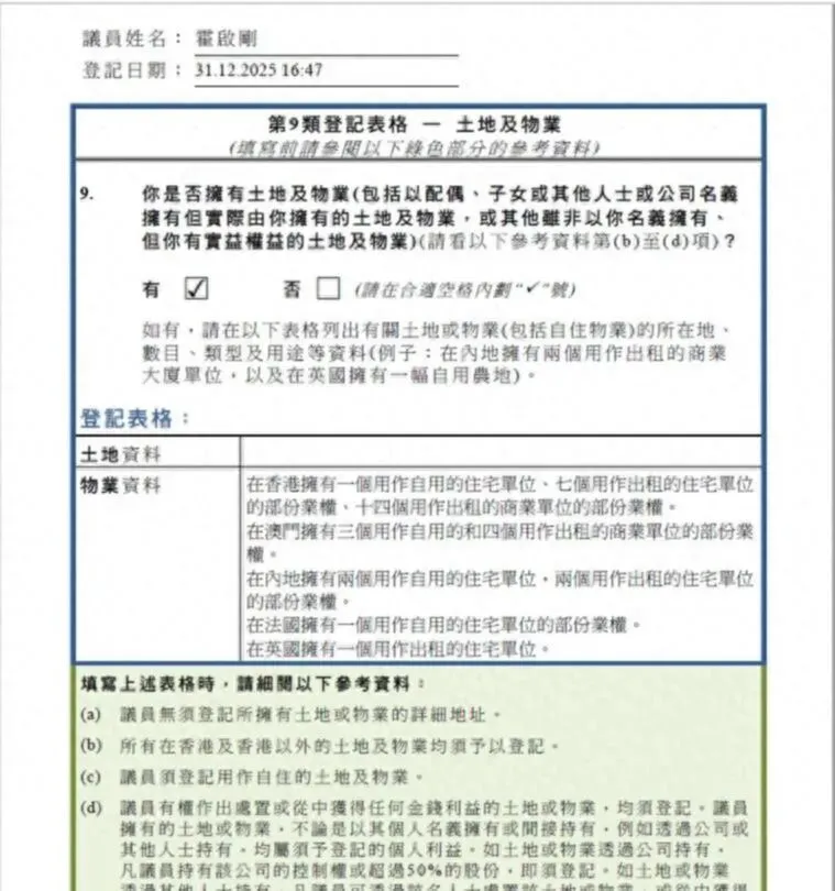 问题的症状很明确:巨额财富天然带有原罪感,容易在公众舆论场上成为被攻击的靶子。霍启刚面临的正是这样一个典型困境。他的做法,不是被动防御,而是主动出击,将一次例行公事的合规动作,变成了一场教科书级的形象管理。回看他上届的申报,仅模糊提及持有物业,而这一次,具体到35这个数字,地点遍及香港、澳门、内地乃至法国英国,连自用和出租都分得清清楚楚。这种颗粒度,瞬间击穿了公众对豪门“藏富”的刻板印象。